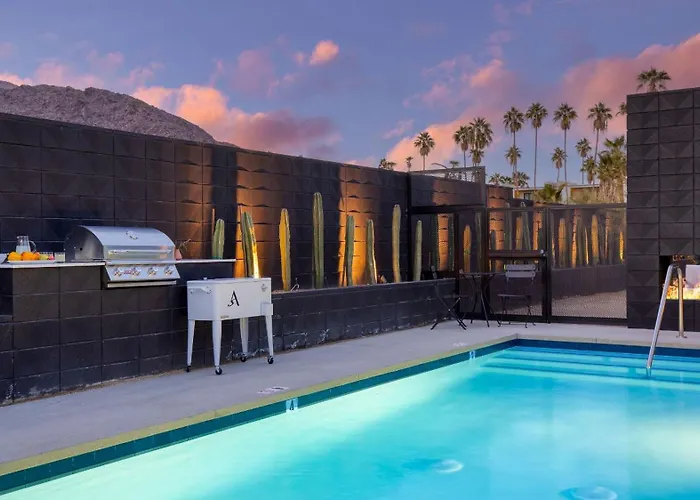Offering a swimming pool, the spacious Blackhaus D: 4 Bedroom Suite By Avantstay 4-Room Retreat Palm Springs is located 6 minutes' walk from the high-end Stewart Galleries. One of the highlights of this apartment is a patio, which allows guests to take in mountain views.